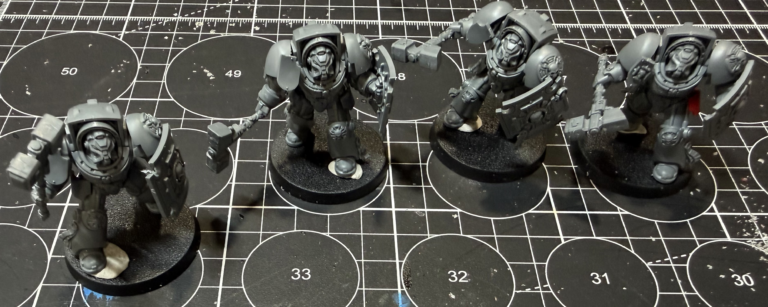 While cleaning up my bits, and looking for bits to use, I found my original Terminator army. Didn’t find what I remember building but found quite a few of them! Again with my normal “over plan”, the loyal Emperor’s Children had Inquisition Pauldrens showing they were loyal as well as being magnetized! So they were:…