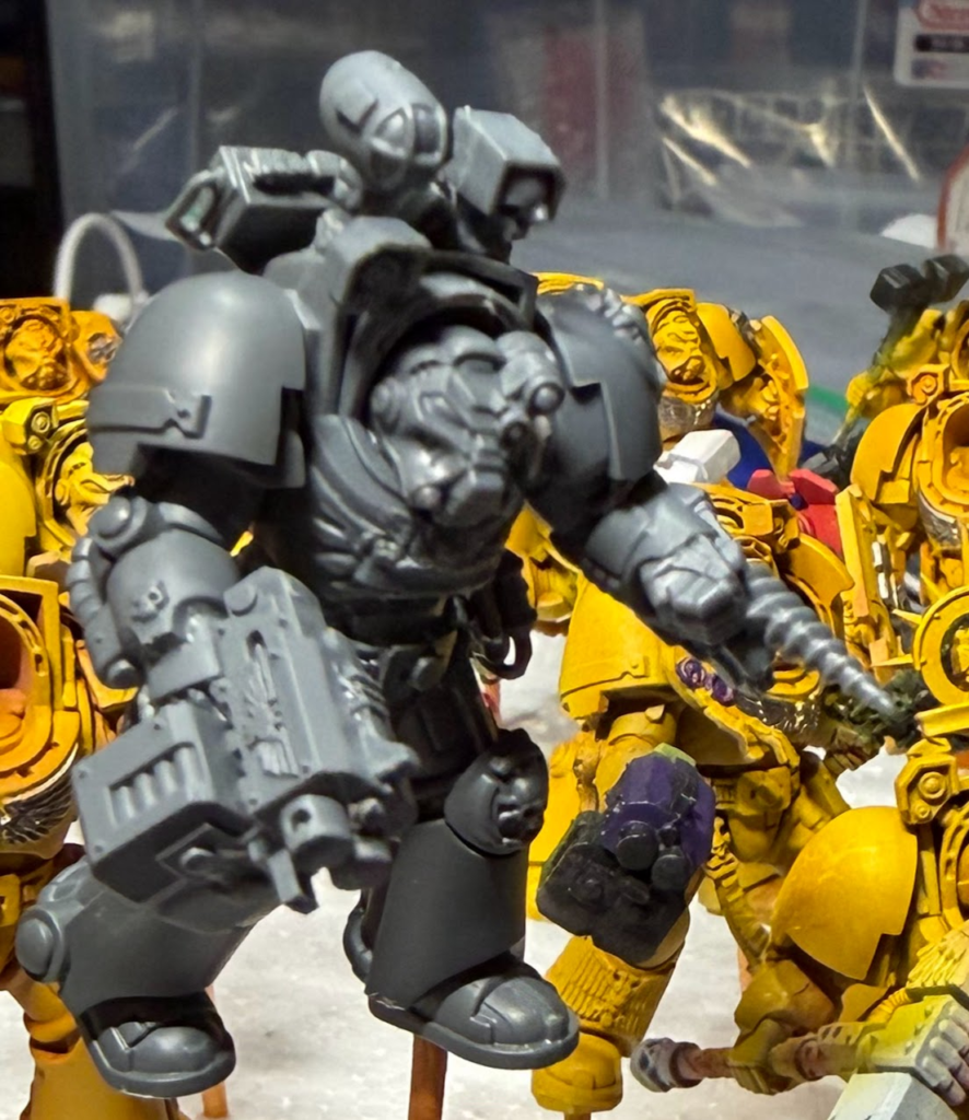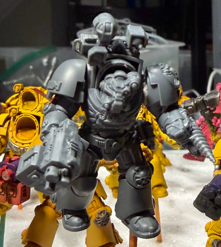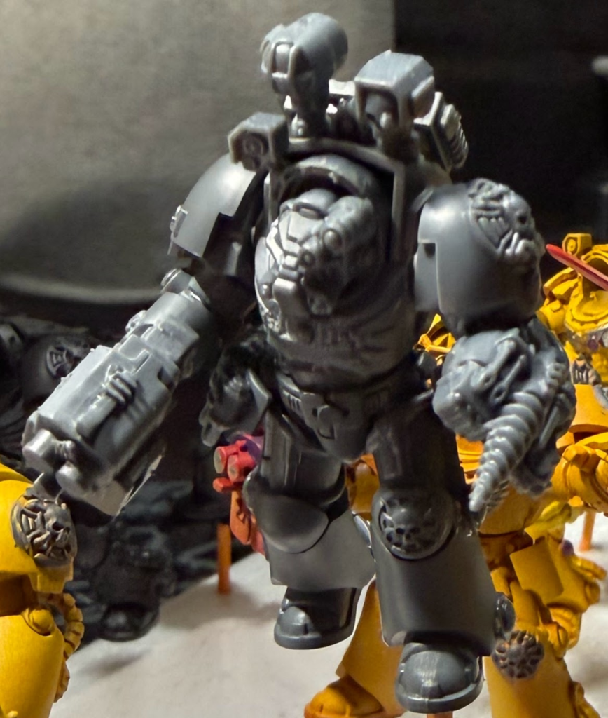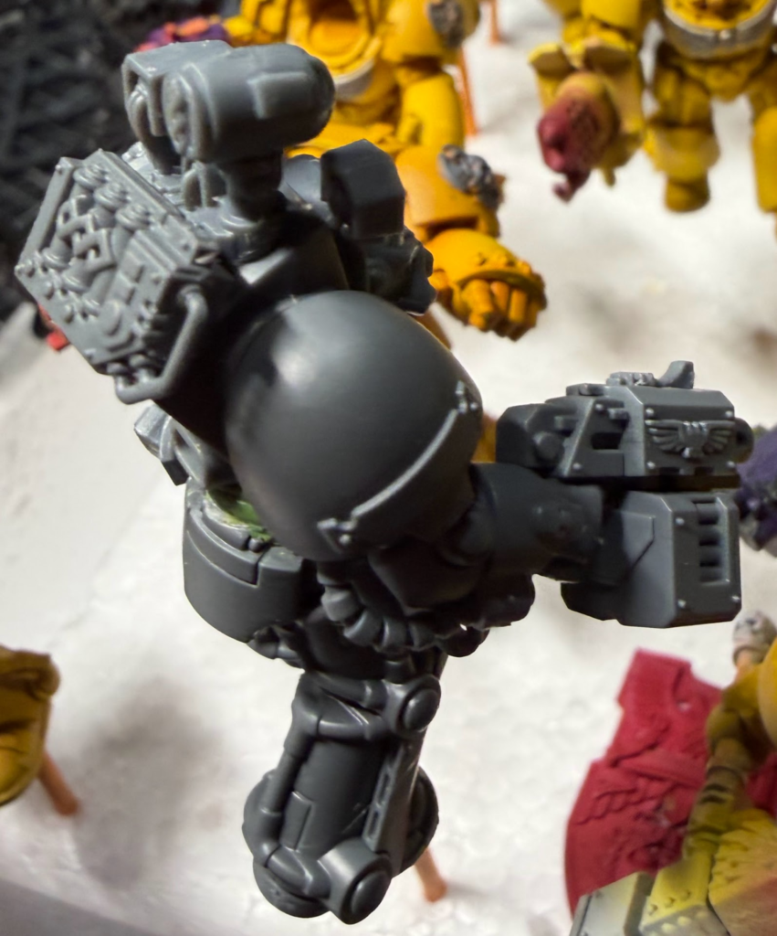 The left arm, the Apothecary arm does look a little smaller. The shoulder pad is attached so I didn’t want to file off the cool Apothecary Terminator marks to put it on a new sholder pad, so I tried to balance the arms.