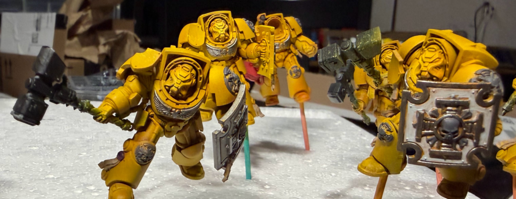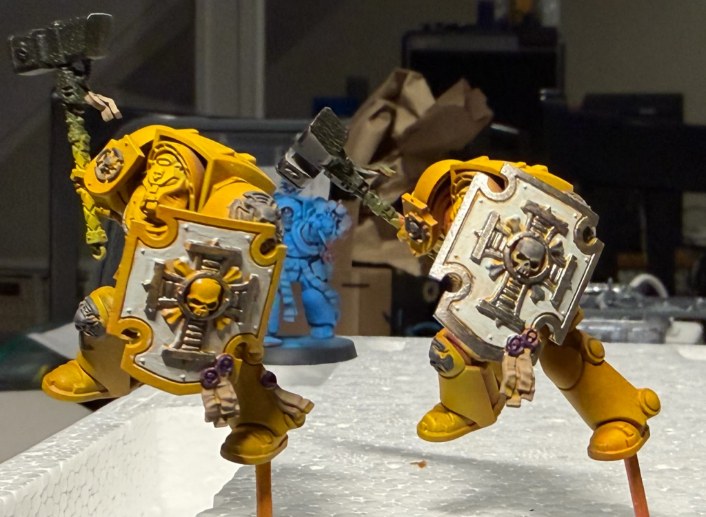 Did some work on the shields and realized I should have started with the light gray. So going to have to make a decision soon. Probably go back to the gray, then re-do the shield iconography.